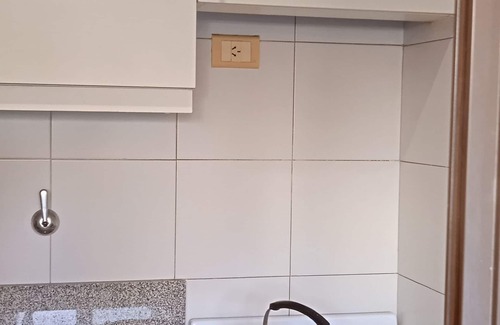 Small entrance hall connects to the living-dining room with glass top table and travertine marble legs and four comfortable frosted metal armchairs with animal print upholstery. A comfortable design chaise-longue with a low table in black is faced with a functional furniture where the Led TV 32 'is located, the music equipment, books, crockery, etc. In the night area, there are 2 single beds that when joined becomes a double bed. The decoration in beech, black, natural and green colors provide a relaxed and cozy atmosphere. The paintings, shelves, books and decorations make the place a modern, pleasant and harmonious place.