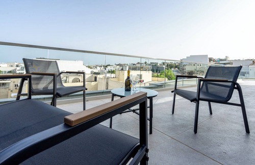 centrally located penthouse is just a few minutes’ walk from St Julian’s, St George’s Bay, and