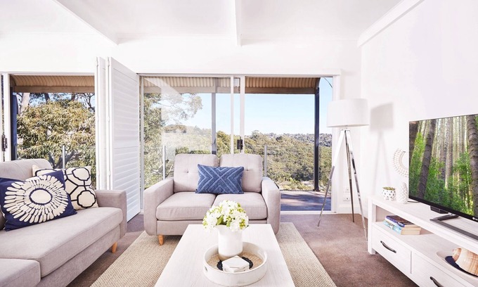This tastefully renovated four-bedroom home in the quiet suburb of Frenchs Forest is perfect for families and groups. It features a stunning timber deck with magnificent views of nearby bushland, yet it’s close to shops, cafes and services, including the Northern Beaches Hospital. The area is safe and leafy, the beach is a short drive away, and there’s a park right across the road for the kids. There’s storage and lots of on-street parking, and public transport if you want to explore the city.