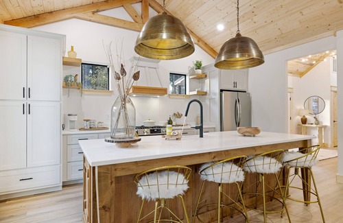 Escape to this incredibly stylish custom and newly built home. Tucked in an oasis of towering pine trees. This modern mission and organic inspired cabin is only minutes from Hochatown's shopping, dining, and attractions.