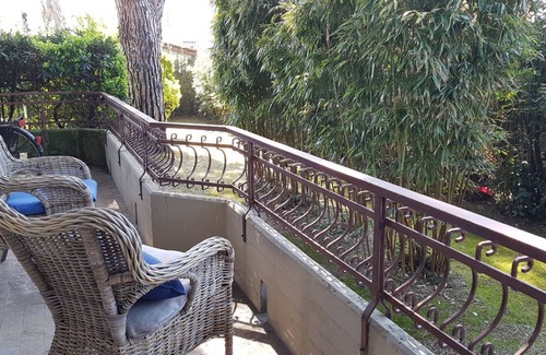 Bright apartment on the mezzanine floor of a building of 6 apartments with a large communal garden and secure parking, a few steps from the sea. 2 bedrooms, with 2 and 3 beds respectively and a large living room with double sofa bed. Eat-in kitchen and two bathrooms with shower. washing machine, hairdryer and clothesline. Large balconies. Very quiet complex.