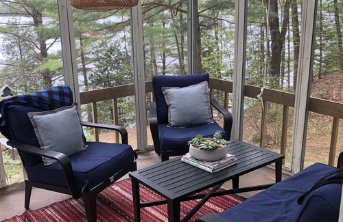 Our cottage has a new kitchen and each room has been newly decorated. The cottage is 2 stories high with cathedral ceilings in the living room and a screened outdoor sitting room so you can enjoy the amazing view of the lake. We are on a well and the water is very safe to drink and cook with. Sun exposure is east and we have the most beautiful sunrise views. Directly behind our cottage is a large park for throwing a ball or walking through the trails.