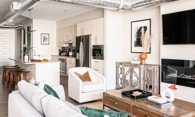 Experience complete rest and relaxation in this stunning modern 2-bedroom, 2-bath condo located in Denver's vibrant RiNo District. Just steps away, indulge in the eclectic mix of coffee shops, bars, breweries, restaurants, and retail outlets.