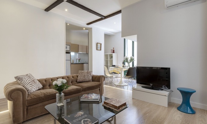 Bright 1br apartment, with capacity for 6 people. The suite for those wanting a little bit of luxury on their doorstep in this MULTI BALCONY SUITE! An absolute must for anyone wanting to get to discover the real city center of Madrid