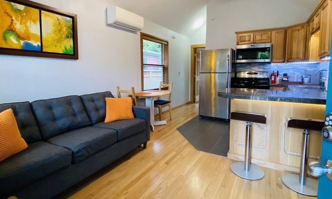 This beautiful suite is located in heart of SE Division/Richmond. Walk/bike score of 90/100, you will find all trendy shopping, bars, and dinning within walking distance. Walk or hop on bus #14 to Portland’s famous Hawthorne District. The suite is furnished with everything you need to feel like home-comfortable queen bed with cotton bedding, cozy sofa bed, kitchen, smart TV, washer/dryer, private patio, and FREE street parking.