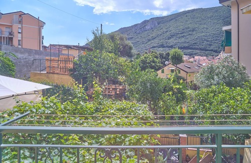 Perfect for 4 guests. Features two bedrooms on first floor, and ground floor has a spacious open-plan kitchen and dining area, living room, and one large bathroom. Guests enjoy a sunny private garden and each bedroom has a balcony overlooking the Ligurian Hills. A shed provides secure storage for bikes.