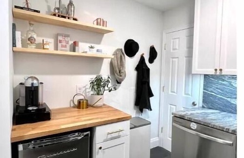 We love our 100+ year old townhome and recently renovated it for your utmost comfort. Fresh minimalist décor creates a relaxing urban oasis. Morning light streams through the windows and washes the open concept living/dining/kitchen area creating the perfect spot to read a good book with a fresh cup of coffee or tea (provided) or visit with friends/family. A four-person dining table provides the perfect spot to share a meal, knock out some work (hopefully not :)) or play games. The sleek modern kitchen is equipped with a full-sized refrigerator (with freezer), extra under-counter freezer, microwave, oven, electric range/cooktop, dishwasher, kettle, coffee maker (and supplies), Nespresso Vertuo coffee maker (please bring your own Nespresso Vertuo pods if you'd like to use it), flatware, mugs, plates, cups, pots, pans and basic cooking supplies. The upper floors are graced with three bedrooms and three bright full bathrooms - all stocked with shampoo, conditioner, body wash, a hairdryer, q-tips and cotton rounds for your convenience. New, full sized LG washer and dryer, iron and ironing board are also provided in the unit's dedicated laundry room. The apartment is equipped with high-speed WiFi with a mesh router network and a 60" Samsung Frame Smart TV (with cable channels delivered through YouTube TV) for your entertainment/viewing pleasure.