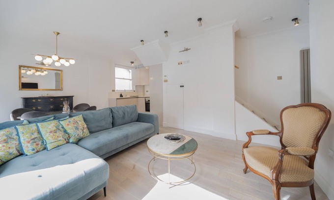 Bright and spacious centrally-located apartment situated in a beautiful building in Marylebone, 7 min walk from Marylebone High Street. This beautiful 80 sqm (860 sqft) apartment is split over the ground and first floor and comprises 2 bedrooms, 2 bathrooms (1 en suite and 1 family bathroom), an airy reception room, and a large open-plan fully fitted kitchen.