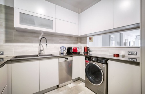 The modern new kitchen is equipped with brand new top quality Bosch full-size fridge/freezer, AEG induction cooker, Bosch oven, Siemens dishwasher, microwave, Whirlpool large-capacity clothes washer-dryer. All modern cooking and dining equipment is provided to a high standard... we love cooking and occasionally use the apartment ourselves when it's not being used by our guests.