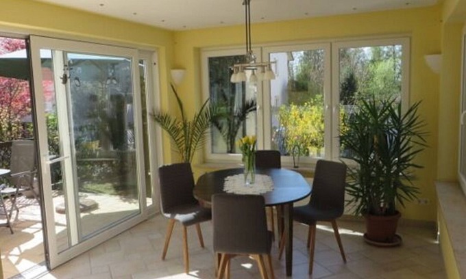 This beautiful bright and modern apartment can accommodate up to 4 people. From the south terrace, the winter garden and the small garden you have a beautiful view of the (local mountain) Pfänder. The large open living and dining area offers plenty of space to relax and enjoy. The kitchen is fully equipped and offers everything a hobby cook needs.