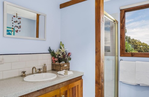 Enjoy the sunroom next to the Mediterranean style courtyard or relax in the spacious gardens enjoying the magnificent views of Mt Wellington and the Northwest Bay. Or explore the flower and vege gardens while considering your next visit to one of many nearby attractions.