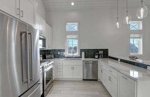 This two bedroom cottage has 2 king bedrooms with built in bunks. The first floor has a primary king with a walk in shower and just outside of the room is one set of twin over twin bunk beds. The second floor houses the kitchen and living area with an open floor plan and a queen sleeper sofa in the living room. The second floor king bedroom has a comfortable, king bed and a detached bathroom for the parents. Sea Salt has covered parking for your convenience as well as in house laundry. Be one of the first to to stay in this beautiful cottage!