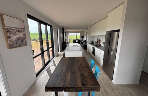 Relax with the whole family at this peaceful Raglan home. Down a right-of-way, in the newly developed Rangitahi neighbourhood, it’s a wonderful spot for a quiet getaway.