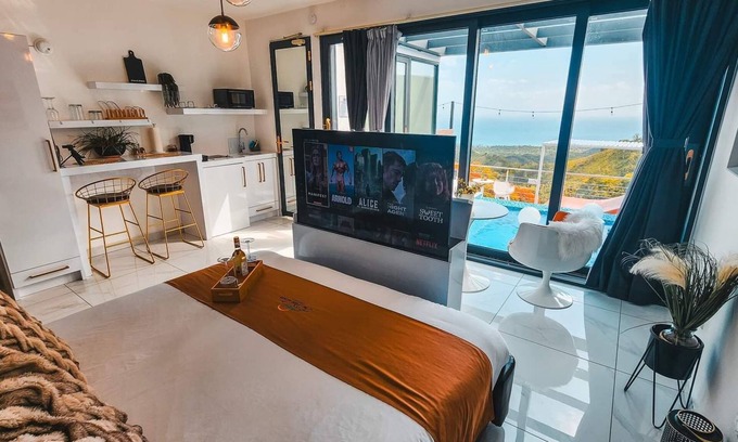 BRISAS SUITE is a luxurious couple's retreat located between Rincon and Aguada, Puerto Rico. Boasting a private pool and an exterior resort style bed with a breathtaking 180 degree overview that features Rincón, Añasco, Mayagüez and some of the island's most amazing beaches.