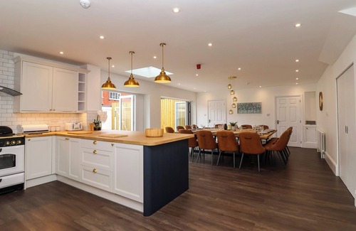 Broad Bay Lodge is a house consisting of a kitchen/diner with a range with gas oven and hob, microwave, fridge/freezer, wine cooler, two dishwashers, kettle, and toaster, a sitting room with Smart TV and woodburning stove, a sitting room with Smart TV and woodburning stove, and a game room with a pool table and dartboard. The bedrooms consist of a super-king-size, ground-floor king-size, and five king-size rooms. Outside, there is an enclosed garden with astro turf, patio with furniture, barbecue, hot tub, and off-road parking for up to 13 cars. Pet-friendly. Sorry, no smoking. Shop and pub 0.3 miles, beach 0.4 miles. Broad Bay Lodge is a wonderful escape to East Riding of Yorkshire, whatever the time of year. Sorry, no pets and no smoking.....Please note this property only accepts full weekly bookings for any school holiday dates during the year