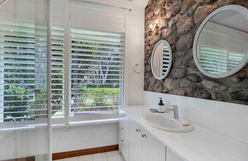 The main residence boasts a Family room with a king bed and enormous ensuite, along with a single bed and trundle for when the littlies want to sleep nearby. A second generous king room with shower and the perfect spot to read a book and a double room next to it. All are air-conditioned inside the main residence. There is another kids' room with two singles that each have a trundle bed so four additional friends can sleep together. This room is not air-conditioned but does enjoy lovely breezes and standing fans. It is accessed separately from the main rooms in the house.