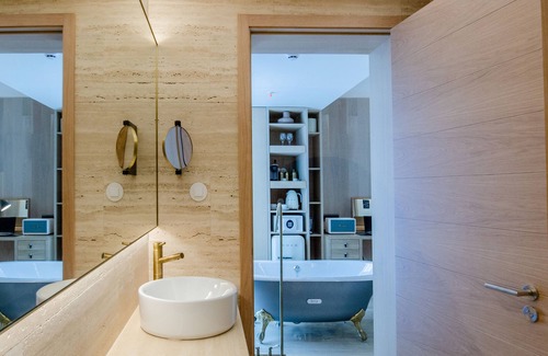 Luxury hotel with a seasonal outdoor pool connected to a shopping center in Lisbon