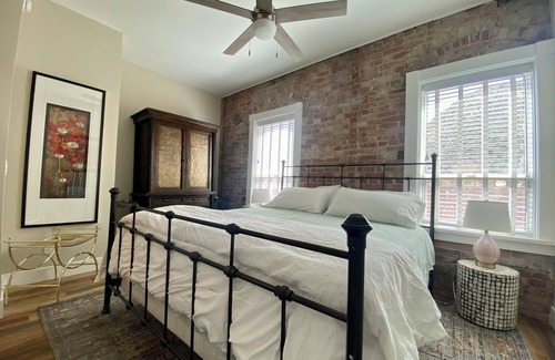 Our gorgeous Loft Suite - done in Signature Bisbee Brownstone style - was the first of our two level suites to be totally remodeled and with its bright, airy upstairs bedroom - it has all the feel of a New York City loft. With exposed brick throughout, an eclectic mix of vintage and contemporary decor and a fully equipped modern kitchen - you will feel at home as soon as you walk through the door!