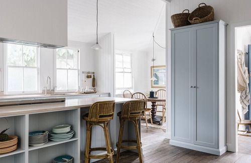 Cook with pleasure in the stunning hand-painted kitchen, complete with large oven, microwave and dishwasher surrounding a generous island bench. Chill your drinks in the characterful retro fridge before unwinding on the front porch to enjoy the view.