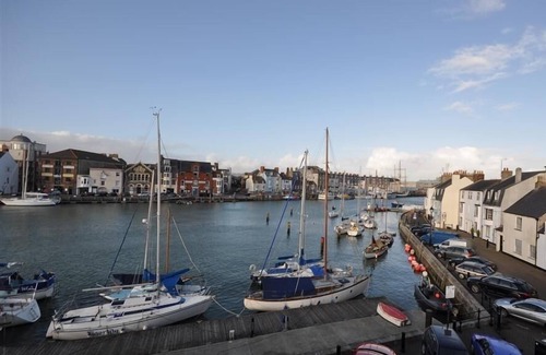 This home is right on the harbourside in Weymouth, Dorset and can sleep six people in three bedrooms.