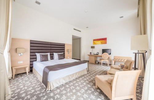 Featuring free WiFi throughout the property, Buda Castle Hotel Budapest offers accommodations in Budapest, 656 feet from Matthias Church. Guests can relax in the on-site bar. Every room at the hotel is air conditioned and features a flat-screen TV. The rooms also include a mini-bar, laptop-size safe, private bathroom a hairdryer, as well as coffee and tea making facilities are also at guests' disposal. There is a 24-hour front desk at the property. The hotel also offers car hire. Buda Castle is 2953 feet from Buda Castle Hotel, while Chain Bridge is a 15-minute walk from the property. The Budapest Liszt Ferenc Airport is 12 mi from Buda Castle Hotel Budapest.