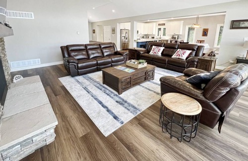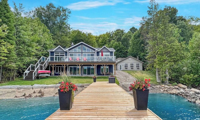 StarLink Fast WIFI - Amazing dock with gazebo surrounded by beach. This 6 BR, 3 BA cottage is ideal for families with young children. The cottage is screened from neighbours by trees. Brand newly built, furnace gas fireplace ensures warmth on cool nights and Air Conditioning. The cottage has a cellphone signal booster (repeater) and high-speed WIFI to ensure you can remain connected while you are away. Paddleboat. Canoe. Kayak’s. Summer/High Season Rents only Weekly (Sat - Sat)
