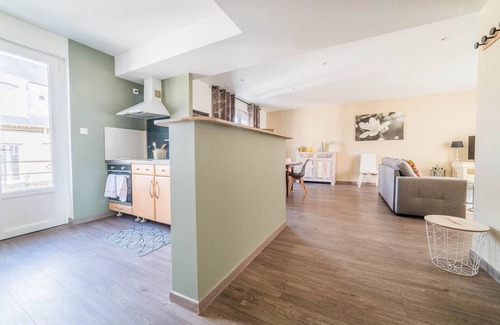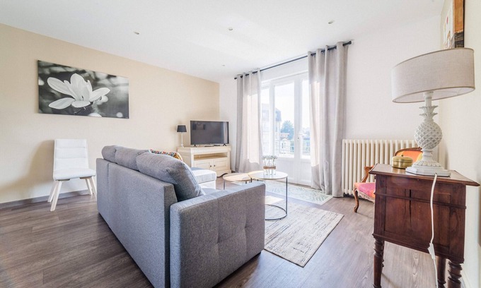 Let yourself be charmed by this 87m2 apartment in the heart of Brive.This carefully decorated accommodation offers all the necessary comfort to enjoy a peaceful stay. Located 10 minutes from the city centre and 20 minutes walking from the SNCF train station, it is ideally situated to explore Brive and its surroundings. The apartment features a terrace, two bedrooms, a fully equipped kitchen and an outdoor parking space. It is ideal for a group of 4 people. Also included in this accommodation:- Sheets, duvets and towels - A starting pack: coffee capsules, a sponge, 2 dishwasher tablets and washing-up liquid.Book now to enjoy a relaxing stay with family or friends!Please note that our accommodations are not equipped with condiments, food products (salt, pepper, oil, etc.), or toiletries such as soap. Remember to bring what you will need for your stay.Coffee maker type: Senseo