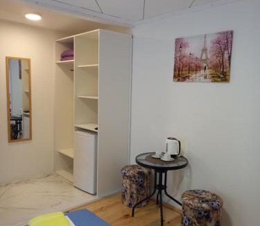 Food & DrinkTea/Coffee makerBathroomPrivate bathroom, Free toiletries, Bathtub or shower, Toilet paper, Walk-in shower, Hairdryer, Body soap, Toilet, Towels, ShowerGeneralMosquito net, Iron, Tile/Marble floor, Fire extinguisher, Key access, Trash cans, Private entrance, Heating, Air conditioning, Ironing facilitiesOutdoorsBalconyKitchenElectric kettle, Cleaning products, RefrigeratorLiving AreaSitting areaViewView, Sea view, Inner courtyard view, City viewBedroomWardrobe or closetAccessibilityUpper floors accessible by stairs onlyBuilding CharacteristicsDetachedRoom AmenitiesNon-feather pillow, Clothes rack, Drying rack for clothing, Socket near the bedPhysical distancingSingle-room AC for guest accommodation |