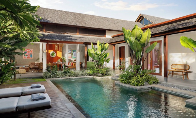 Nestled in the heart of Bali's lush landscapes, Bumbak Park Villas is a tranquil oasis offering 12 private villas, each with its own unique style and ambiance. Set within a sprawling 4,000 square meters of meticulously landscaped tropical gardens adorned with native and exotic flora, this enchanting retreat combines luxury with nature. Popular amenities include an outdoor swimming pool, complimentary WiFi, an airport shuttle, family rooms, free parking, non-smoking options, air conditioning, and a delectable breakfast. Conveniently located near Batu Belig Beach and Nelayan Beach, with Ngurah Rai International Airport just a short drive away, the property also offers a free airport shuttle service. Explore the nearby Jl Pantai Berawa, Finns Beach Club, Métis Restaurant, Restaurant Sarong, and more, all within easy reach. At Bumbak Park Villas, every moment is an opportunity to experience the beauty and culture of Bali in perfect harmony.