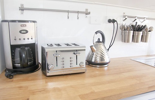 The generous three-way bathroom suite has a double washbasin area, separate bath and shower room and separate toilet. Super soft, 100% Egyptian cotton towels provided in-home use and other towels provided for beach use.