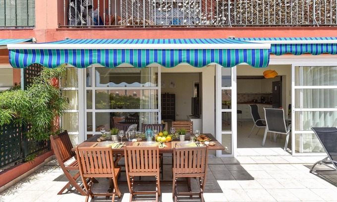 This holiday rental is perfect for families, counts on one big master bedroom with a wonderful ensuite bathroom provided, another family bedroom with one double bed and access to another room with a trundle bed that can be turned into 2 singles. This holiday home counts also on a second bathroom with shower, a spacious living room, and a full equipped kitchen so you won't miss anything! the icing on the cake to this beach rental is it's massive terrace with solarium and dining area! Enjoy a meal outdoors in this sailory ambience