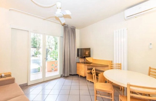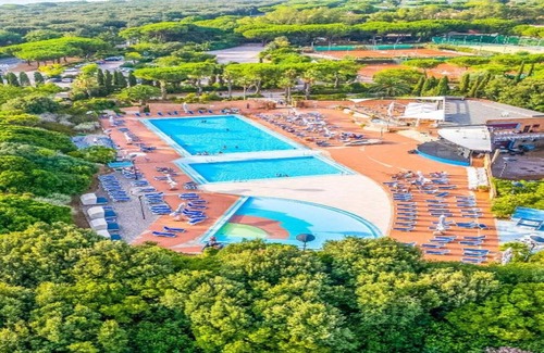 Spacious holiday complex, surrounded by a pine forest with approximately 30 hectares of parkland, beautiful vegetation and old trees. The approximately 1 km long, private beach (sun loungers/umbrellas) with numerous water sports options is approximately 200 m away. This family-friendly complex consists of a hotel (approx. 80 rooms) + bungalows + holiday apartments (approx. 285), which are generously spread throughout the complex. The complex features a reception, lounge with satellite TV, a specialty restaurant, a self-service buffet restaurant "All Orto", a pizzeria, a gallery of shops, a supermarket, an ATM, and much more. A swimming pool (25 x 12 m) with a separate children's pool is open throughout the season across the street from the hotel – easily accessible via an underpass. Sun loungers and umbrellas are included! Highlights included: final cleaning, linen package, all consumption-based energy costs, Wi-Fi, parking, air conditioning, private beach (2 sun loungers + 1 sun lounger + 1 umbrella) approx. May 23rd - October 19th.