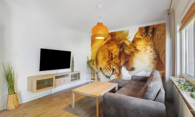 The bungalow 'Der Löwe' with step-free interior is located in Niedenstein and is ideal for an unforgettable holiday with your loved ones. The 80 m² accommodation consists of a living room with a sofa bed for 2 people, 2 bedrooms and 1 bathroom, and can accommodate up to 8 people. Amenities also include Wi-Fi and a TV. Enjoy the comfort of a private grill to prepare delicious meals during your stay. Sauna and whirlpool are available exclusively on request and can be used for an additional fee.