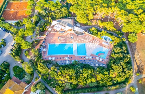 The detached bungalow is furnished in a modern and functional style. The property is located in a holiday resort. Also due to its quiet and sunny location in the forest and at the water the domicile is popular. Available for use: sunbathing lawn, parasol, sun lounger, terrace and garden furniture. The entrance to your bungalow leads directly into the living room. Living room with 2 extra beds on a double pull-out couch and TV. Bedroom with 1 double bed. Bedroom with 2 single beds. Kitchen with access to the terrace, (induction stove) and refrigerator (with freezer compartment). Bathroom with shower, toilet and bidet.Holiday resortreception (safe), cash machine, 5 restaurants, pizzeria, bar, pool bar, internet (WLAN), supermarket and laundry. LocationSan Vincenzo. The bungalow is located in a holiday complex, on a enclosed garden plot with meadow and trees, bordered by a fence and a hedce. The complex consists of 252 houses, 116 hotel rooms and 34 residences. The resort is immersed in a centuries-old park bordering the Rimigliano Park, just 7 km from the Gulf of Baratti. Access is directly from the main road (asphalted). Parking is available on the property. Specialair conditioning. Ceiling fan.Facilities: phone and safe. TV reception takes place via satellite.For your safety, the accommodation is equipped with CO2 detector and fire extinguisher.Hygiene measures: contactless payment. PoolAll pools are available for shared use. Outdoor pool (usable from end of May to mid October). Children's pool. LeisureIn the complex: gym, tennis, table tennis, bike rental and boat rental. The resort also offers sailing and windsurfing courses, water sports and archery. With the exception of the fitness room and table tennis, all sports are available for a fee Dogsnot allowed. DistancesShopping 100 m, restaurant 200 m, town center 3 km. In the vicinity there are some interesting cities such as Pisa, Livorno and Lucca. A trip to the island of Elba is worthwhile In summer: Bathing possibility 100 m in Riva degli Etruschi (private beach 100 m in Riva degli Etruschi featuring sand). DivisionBungalow, 1 floor, 3 rooms (including 2 bedrooms), 57 sqm, in total 6 beds (including 2 additional beds). RoomThe entrance to your bungalow is located on the ground floor and leads over 5 steps directly into the living room. Bedroom with 1 double bed. Bedroom with 2 single beds. Living/bedroom with 2 additional beds on double sofa bed, sitting area, TV, dining area (4 seats) and access to the terrace. Kitchen with electric stove (ceramic hob, 4 plates), extractor hood, fridge (icebox) and access to the terrace. Bathroom with shower, 1 washbasin, WC, bidet and window. Credit cardsVisa, MasterCard. Terms of lease and pricesIncluded in the priceOutdoor pool, internet access, air conditioning, sunloungers at the pool, parking place, electricity, water, final cleaning, local tax (under 12 years), breakfast (under 6 years), pool (23.05.25-18.10.25, 22.05.26-17.10.26), fitness room, lunch (under 6 years), dinner (under 6 years), beach service (1 sunlounger, 1 chair, 1 parasol), Childcare, Animation. Side costs-Costs on the spot:/Obligatory:local tax by local tariff (if charged).On request:baby cot 13 € per bed per day. bed linen 11 € per person per change. hand towels 7 € per person per change. breakfast 18 € per person per day. lunch 25 € per person per day. dinner 35 € per person per day.Deposit:No deposit.