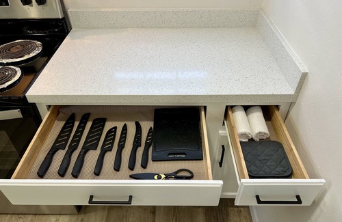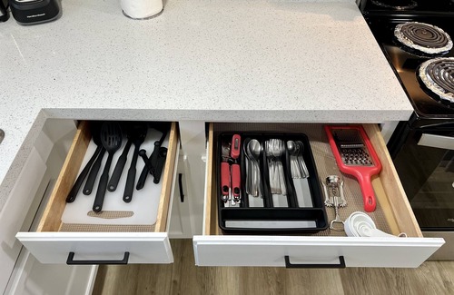 It features a fully fenced backyard with a driveway for two vehicles (access from back alley). The home comes with a fully functional kitchen including all the kitchen basics for your cooking needs. Bedroom #1 has a very comfy King size bed, a Roku TV and a ceiling fan. Bedroom #2 has two (2) Full size beds, a Roku TV and a ceiling fan.