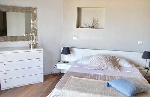Large two-room apartment on the beach, facing the ocean, living room with open kitchen, minibar, lounge, bathroom, double bedroom with private bathroom, furnished veranda, private beach, garden and parking. Perfect for couples or remote workers, quiet and relaxing environment