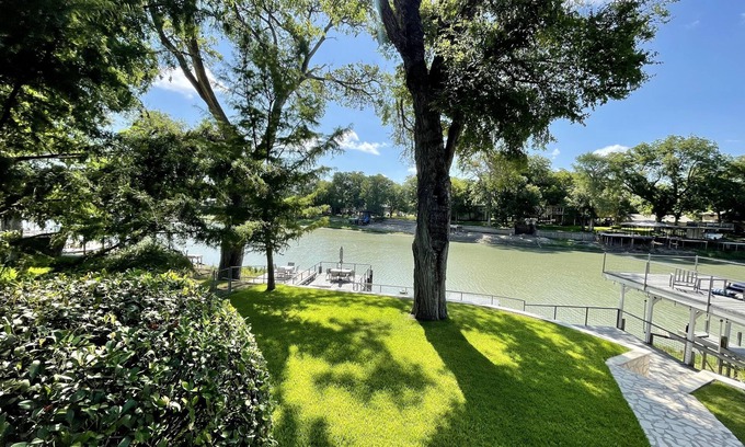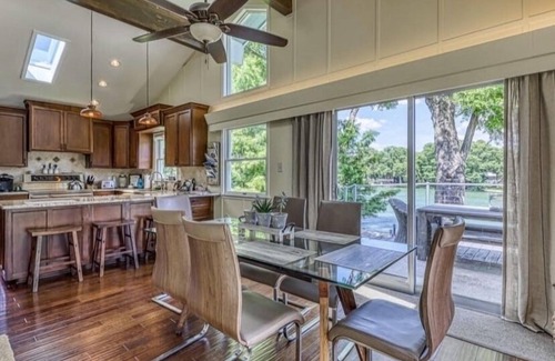 With 4 bedrooms, 3.5 baths, and 2 living areas the home easily sleeps 10 people with multiple areas for entertaining. This waterfront home has the Guadalupe River right out the back door and is a prime location for those wanting to be close to Schlitterbahn in New Braunfels and Gruene Hall (15 minutes), Lake Breeze Ski Lodge in McQueeney (5 minutes) and San Antonio ( 30-minute drive to the Alamo and Riverwalk).