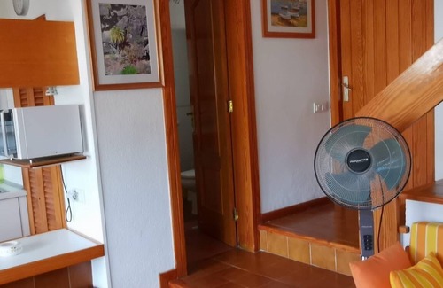Bungalow semi-detached, renovate, private wifi, safe, distributed over 2 floor: Lounge, kitchen, service bathroom, solarium, terrace with small private garden. Upstairs: Two bedrooms and main bathroom. Please watch the video. The bungalow has beautiful views, is located in a residential complex closed all around, equipped with security cameras. It has communal areas, gardens, pool-solarium and is 5 minutes walk from a major shopping center with supermarkets, bank offices, ATMs, restaurants, pubs, clinics, pharmacy, laundry, gambling rooms, gym, taxi rank. The distance walking to the beach is 12 minutes. There is a bus stop within 5 minutes walk, with connection to the airport, island capital and other places. The excellent location make it not necessary to use car. There are 2 golf courses within a 10 minute drive. There is a spat about 15 minutes walk. If you enjoy walking you have long walks along the sea that connect with other beaches. You can also take boat trips or fishing on the coast. The island has very good communications by plane or boats with other islands.