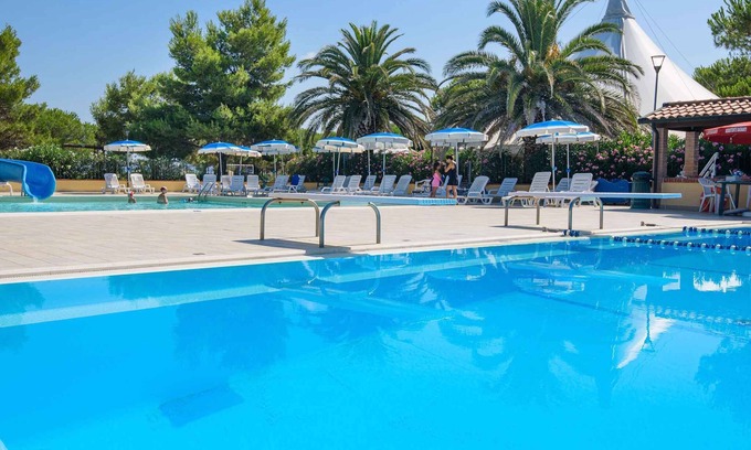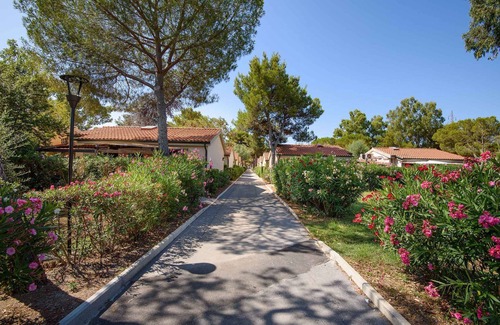 The bungalow is modern and functional furnished. The property is located in a busy environment, in a holiday complex. The domicile is also popular because of the sunny location. For use are available: children's playground.LocationPiombino. The bungalow is located in a holiday complex, on a 18000 sqm, open garden plot with meadow. The access goes directly from the main road. Parking lot on the property. Specialair conditioner. Facilities: internet access (WLAN). TV reception takes place via antenna. TV channels only in local language. PoolOutdoor pool (10 m x 25 m, depth 2 m, for common use). The pool facility can be used from mid of May to the end of October. 6 swimming pools, including 2 semi-Olympic pools with diving boards, 2 with slides and 2 for children; 3 in operation from May to the end of September and from June 3 to mid-September LeisureIn the complex: tennis, table football and bike rental. animation for children from 4 years and adult animation. Mini club entertainment (04-11) and junior club (12-17) from June to September. Dogsallowed, EUR 8.00/pet per day. DistancesShopping opportunity 200 m, restaurant 200 m, town center 5 km. railway station in Campiglia Marittima 14 km. doctor in Piombino 14 km. airport in Pisa 100 km. pharmacy, bank each 5 km in Riotorto. Children's playground 200 m. Beach at 1000 m connected by shuttle train from the village. Tourist medical service in the village in July and August DivisionBungalow, 2 floors, 3 rooms (including 2 bed rooms), 32 sqm, in total 5 beds (including 1 additional bed). RoomThe entrance in your bungalow is at ground level and leads directly in the living room. Bedroom (walk-through room) with 2 single beds and The mezzanine floor can be reached via a steep staircase. Living room (walk-through room) with 1 additional bed on couch/sofa, TV, dining area and access to the terrace (garden furniture). Bedroom with 1 double bed and 1 crib. Cooking nook in the living room with dining area (5 seats), gas stove (4 flames), fridge and coffee machine. Bathroom with shower, 1 sink, WC and bidet. Terms of lease and pricesIncluded in the priceOutdoor pool, air conditioning, parking place, electricity, gas, water, final cleaning, bed linen, hand towels, pool, Wireless Internet access. Side costs-Costs on the spot:/Obligatory:final cleaning of the kitchen (if not performed by the tenant) 25 € per object per stay. local tax by local tariff (if charged).On request:baby cot – please order at booking 5 € per bed per day.Deposit:No deposit.