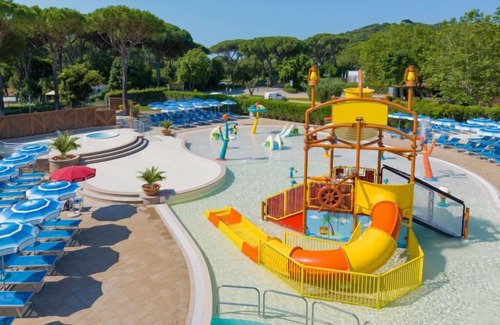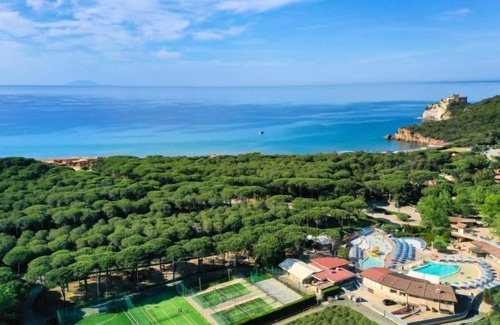 Nestled in the colours and scents of the Mediterranean sea, this resort offers the comforts of lovely bungalow, with own private outdoor spaces and amenities ideally for families and their children. It is in a great location to visit Maremma and the cities of arts that surrounds it (Siena, Pisa, Florence, Rome). 2 swimming pools (swimming cap compulsory) with deck chairs and sun shade, one for children and one with hot tub next to the main facilities. Large resort. In the hamlet Rocchette 7 km from the centre of Castiglione della Pescaia, in a quiet position, 150 m from the sea, road to cross. For shared use: 2 swimming pools (depth 150 cm, seasonal availability: 12.Apr. - 02.Nov.). WC in the pool area, children's pool, outdoor shower, hot tub, tennis, beach volleyball, children's playground. In the complex: reception, restaurant, bar, WiFi, shopping facilities, washing machine, tumble dryer (for shared use, extra), bicycle rental. Available: canoe (extra). Breakfast full board half board possible on request (extra). Parking on the premises. E-charging station. Supermarket 8 km, bus stop 50 m, sandy beach "Le Rocchette" 150 m. Marina 10 km, golf course (18 hole) 20 km, riding stable 10 km. Nearby attractions: Punta Ala 12 km, Follonica 20 km, Massa Marittima 30 km. Please note: entertainment in the season. Suitable for families. The holiday properties may differ in situation, size and location. Access to the sea with a free beach (free) or equipped beach for guests (extra on request) is located in front of the Residence. Restaurant, pizzeria, bar, supermarket, butcher, ATM, soccer, outdoor fitness area, padel field, large playground and animation (30.05–27.09 ca).