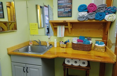 Tent camping? We offer a separate bath facility with hot shower and an outdoor laundry room with utility sink for doing your dishes.