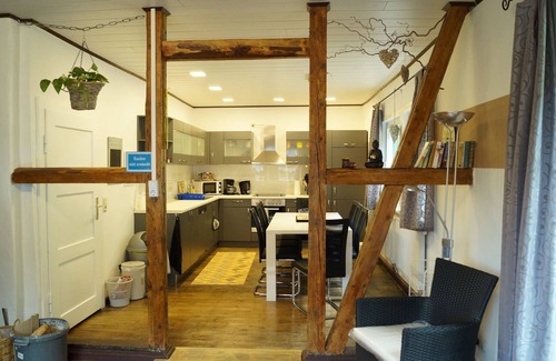 Rent a quiet holiday home with rustic features and modern furniture on the outskirts of Rübeland. The living area is 110m² on two floors.