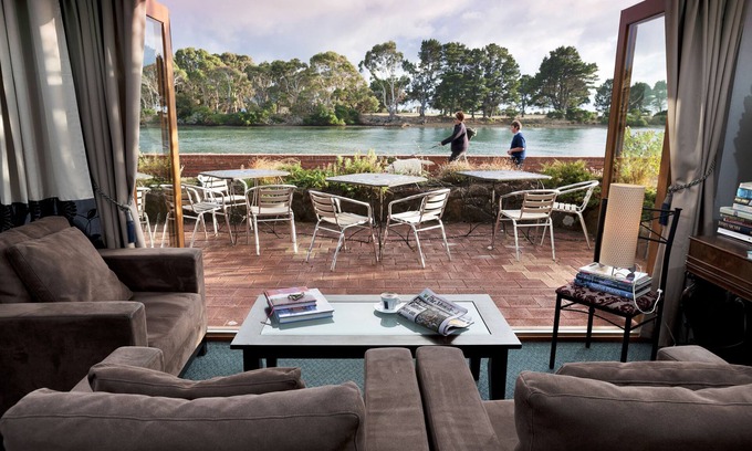 Riverwalk motel with a coffee shop and a restaurant