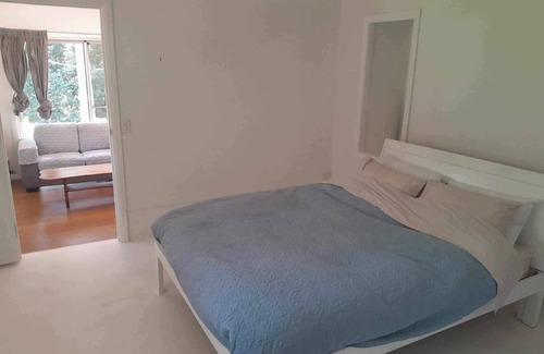 Private SELF CONTAINED large open plan bedroom with private en-suite situated on the ground floor of the main house with secure entrance. Very comfortable queen size bed, is located across the road from a coffee shop. A short stroll to the towns CBD and rail trail bike track.