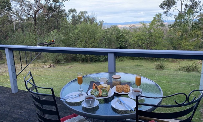 Spectacular views over the Hunter Valley and, on a clear day, across to the ocean at Newcastle, while still having the privacy and quiet you need to have a real holiday, away from the bustle of the city.
