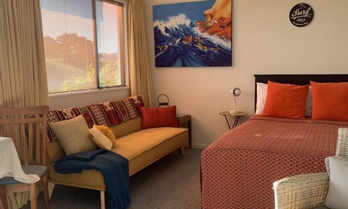 Situated in a quiet position right by the Oakura 4 Square, restaurants, cafes and specialty shops. On arrival you will be greeted by the owners friendly little dog who is always keen for a pat. This cute studios at the bottom of the owners home, with its owner separate entrance.
