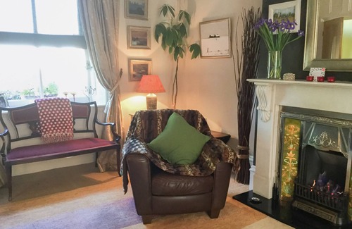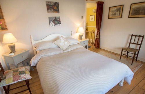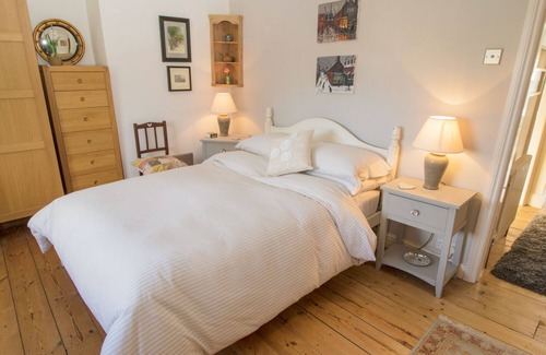 Amenities: Central heating with gas fire. Electric double oven, ceramic hob, microwave, fridge, freezer, washing machine, dishwasher, TV with Freeview, DVD, CD/radio, WiFi, selection of books and DVDs. Fuel and power inc. in rent. Bed linen and towels inc. in rent. Roadside parking on first come, first served basis. Enclosed front courtyard with bench. Enclosed rear paved garden with furniture. Two well-behaved dog welcome. Sorry, no smoking. Shop 10 mins walk, pub 1 mins walk. Note: Front bedroom divided from hall by floor-length drape. Note: Max 2 adults and 2 children.