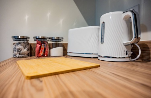 This stylish 1-bed/1-bath apartment is clean and able to sleep 5 guests comfortably. Fitted with a single bed which can be joined into a super kingsize bed.