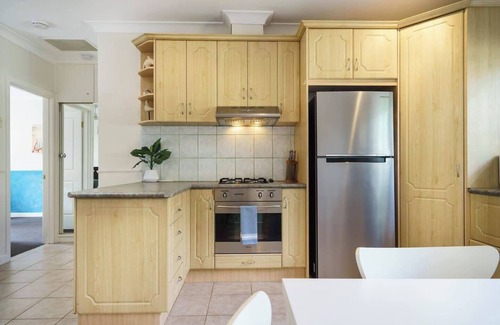 Step inside to a bright, open-plan living space filled with natural light. Sink into the cosy sofa and enjoy movie nights or a quiet evening with reverse-cycle heating and cooling to keep everyone comfortable year-round. The fully equipped kitchen, complete with an oven, stove, microwave, dishwasher, and Nespresso machine, makes home-cooked meals a breeze when you're not exploring the nearby cafes.