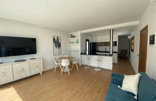 The living room is 25 m2 next to a 15m2 balcony. It has a sofa bed where 2 minors or an adult can sleep. Black-out curtains, a/c, smart TV with Netflix, Amazon Prime and multiple options to watch TV Online. Dining table with 4 chairs and work table with Ethernet and Wifi connection.